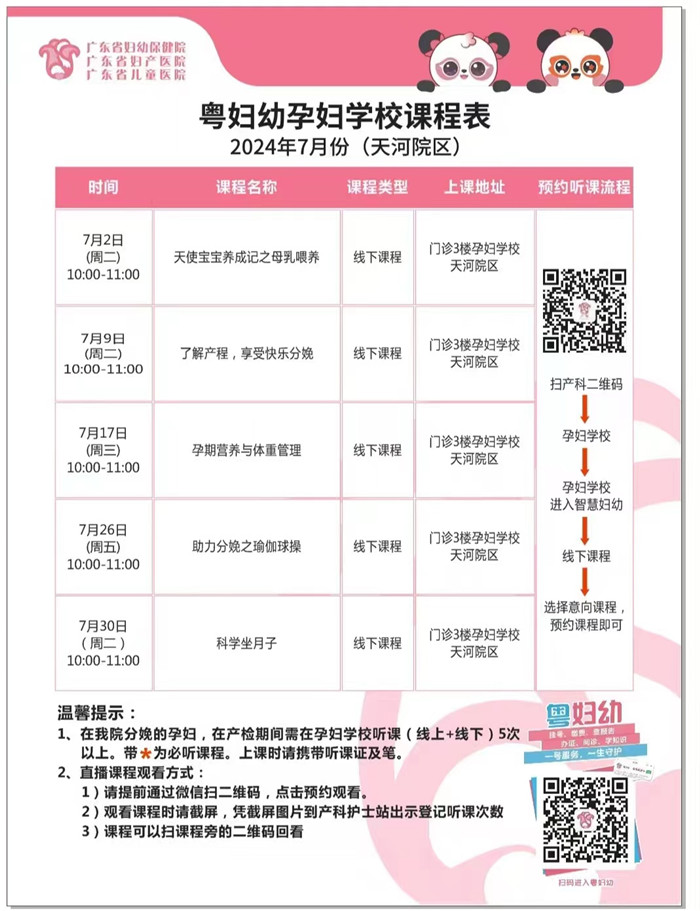 2024年7月份孕妇学校课程表(天河院区)