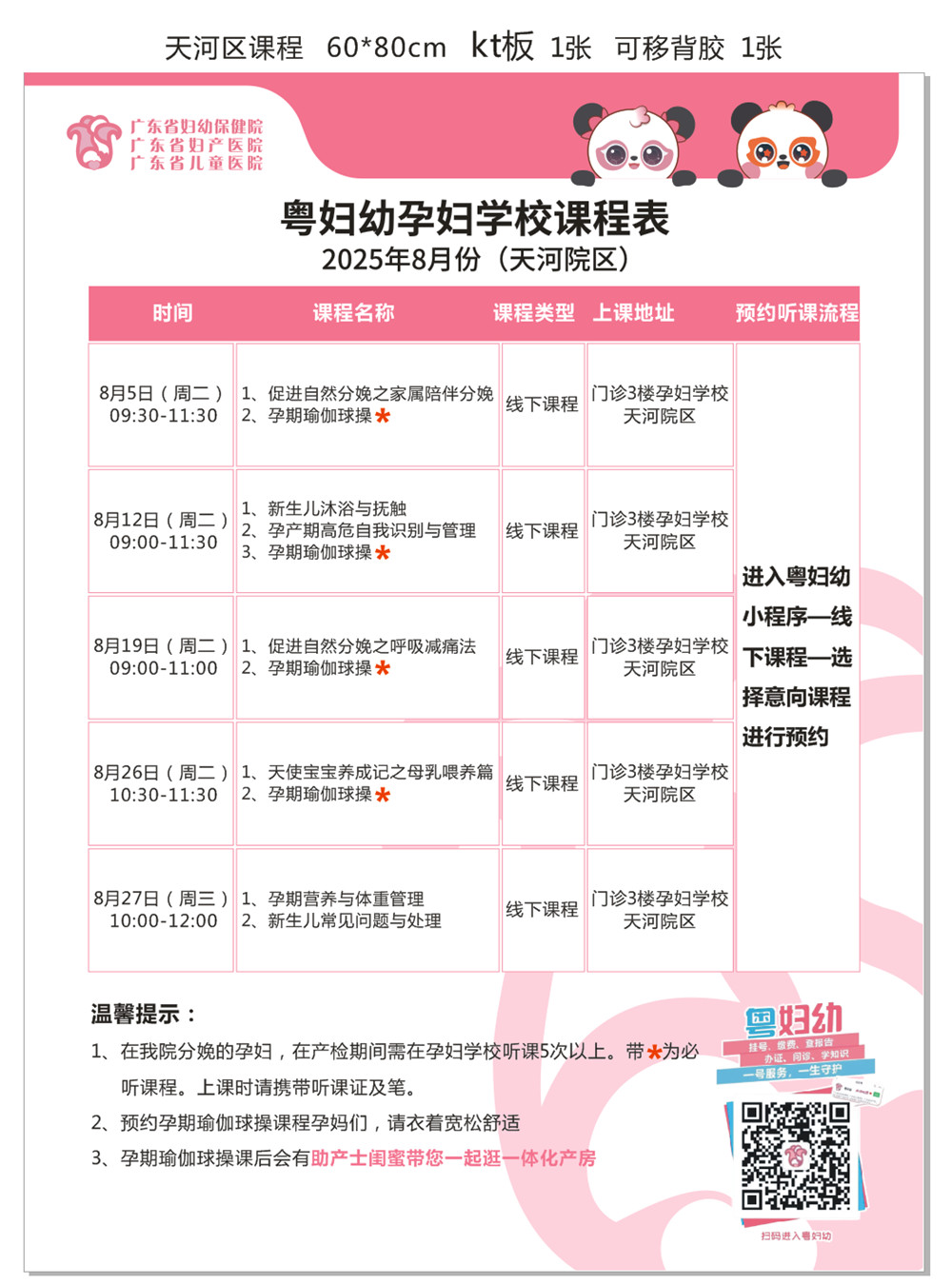 2025年8月份孕妇学校课程表(天河院区)