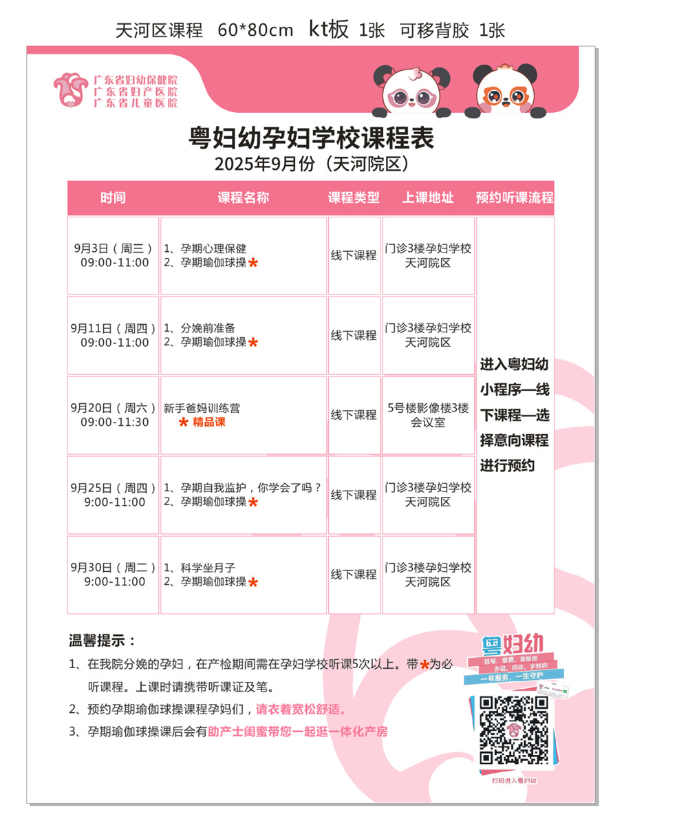 2025年9月份孕妇学校课程表(天河院区)