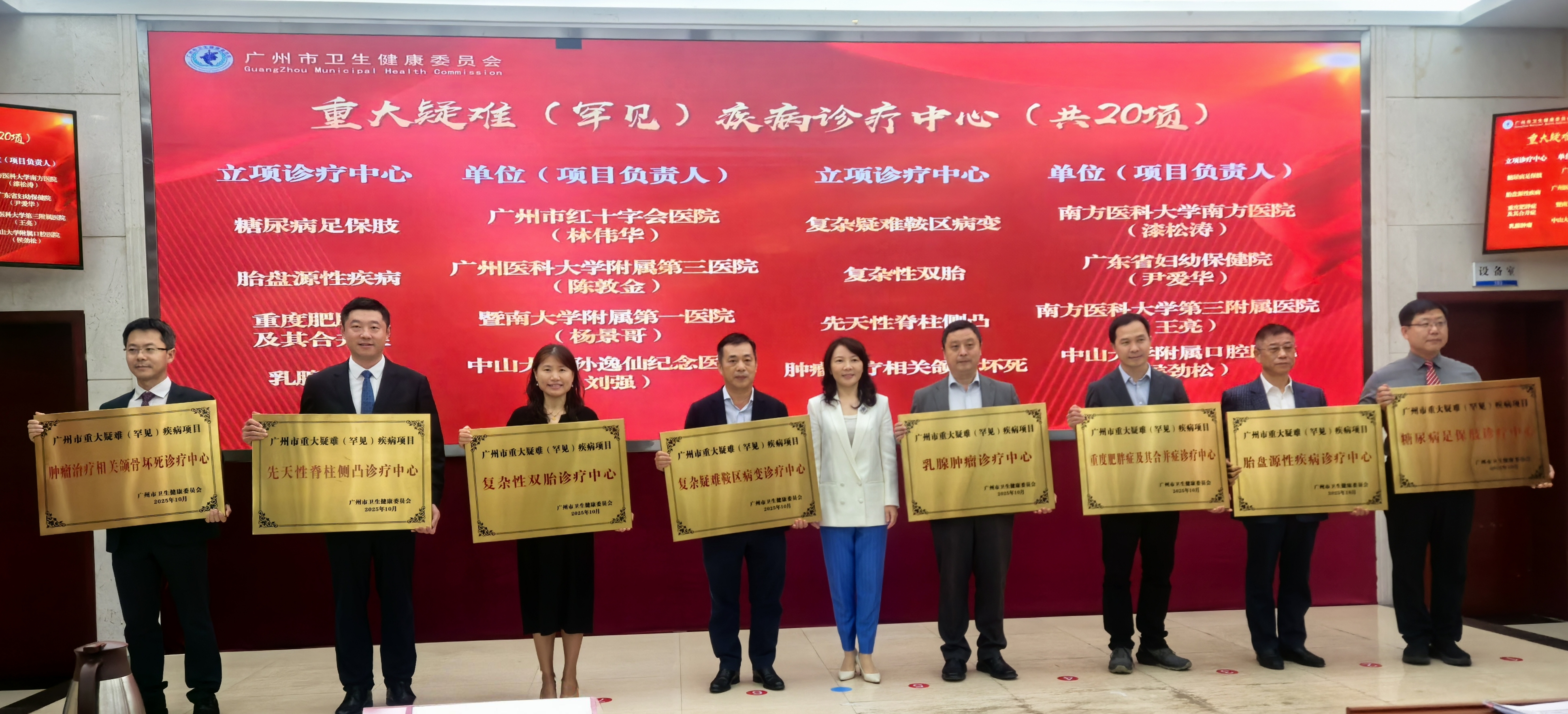 11月3日下午,广州市医疗高地项目建设经验交流会暨第二批重大疑难(罕见)疾病诊疗中心等项目通报授牌活动在广州市卫健委召开,会议通报了2026-2028年广州地区临床高新、重大和特色技术项目、第二批重大疑难(罕见)疾病诊疗中心项目及重大临床医疗成果项目的立项名单。由我院尹爱华副院长作为项目负责人申报的“广州市复杂性双胎诊疗中心”成功入选,荣获广州市第二批重大疑难(罕见)疾病诊疗中心项目。此次项目成功获批,是我院胎儿医学发展的又一重要里程碑,将复杂性双胎的诊疗水平推向了新高度。
