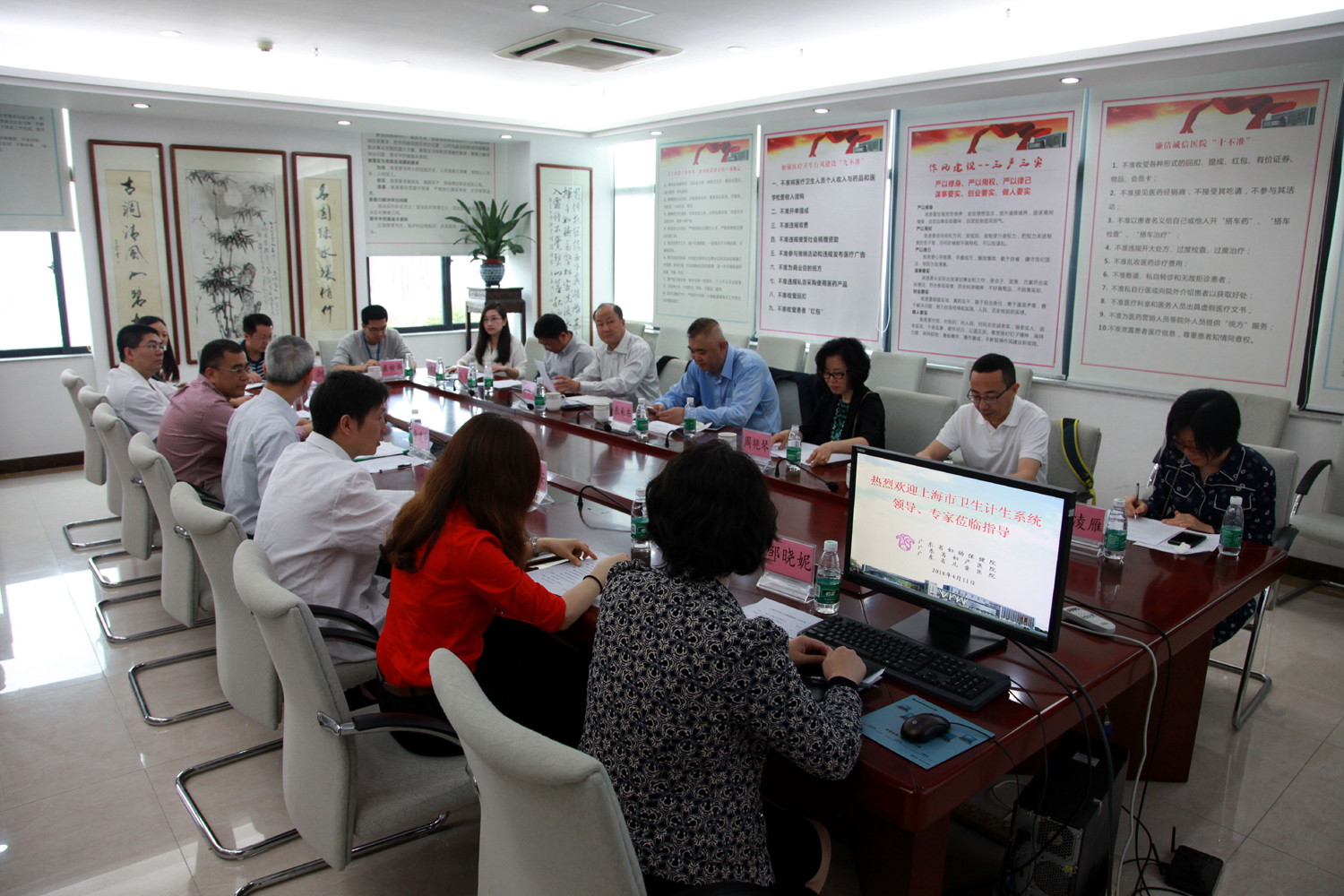 2018年4月11日上午,上海市卫生和计划生育委员会副主任衣承东、食品安全标准与评估处处长周艳琴;上海市疾病预防控制中心副主任郭常义、健康危害因素监测与控制所所长贾晓东、食品卫生与食源性疾病防治科科长刘弘;上海市卫生和计划生育委员会监督所、食品安全标准科科长李凌雁,食品安全标准与评估处主任科员袁微嘉一行7人到我院开展食品安全标准与监测评估工作调研交流。广东省卫生计生委食品安全标准与监测评估处处长李建中、主任科员刘卓;广东省疾病预防控制中心营养与食品安全所副所长闻剑、疾病监测室主任梁骏华;广东省妇幼保健院陈运彬副院长、医院感染管理科邹晓妮科长、急诊科赵长安主任、内科罗毅平主任、检验科穆小萍主任、急诊科刘美娟护长、儿童消化科高利伟副主任医师等人热情接待了上海市卫生计生委调研交流组的到访。