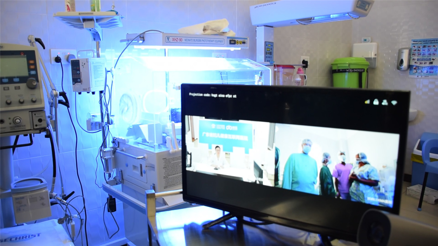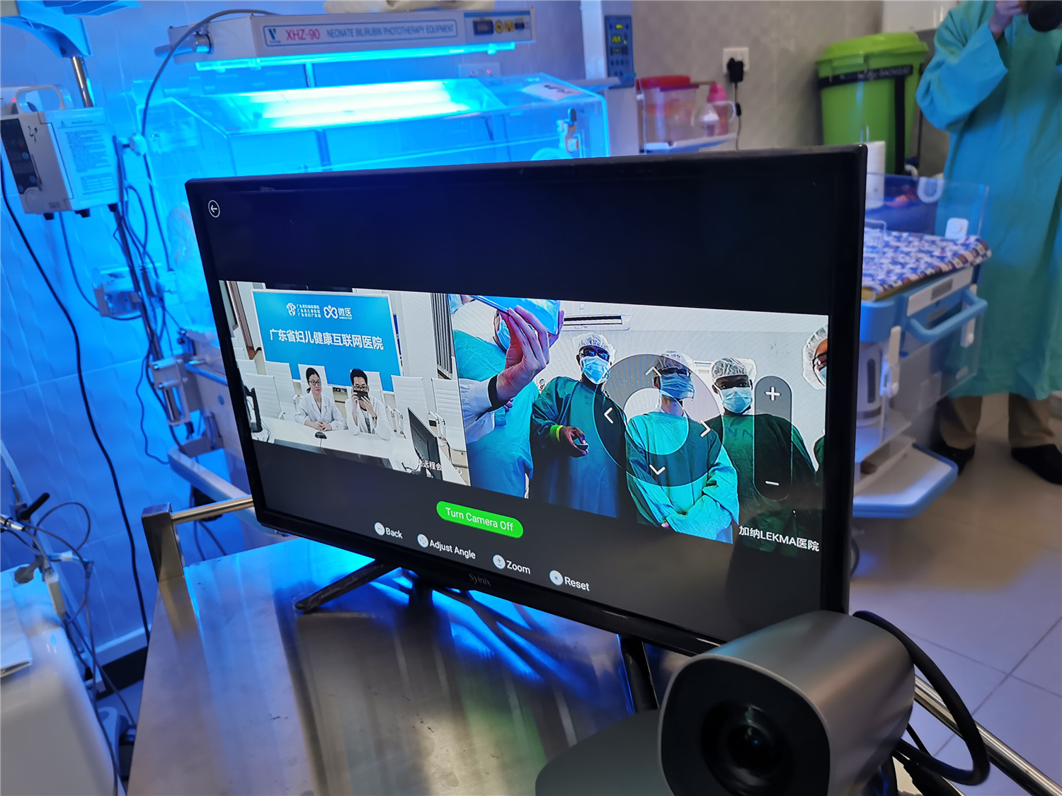 “早产儿Cathy,性别女,29周,出生后数次出现呼吸暂停的问题...”2019年5月16日晚上,广东省妇幼保健院远程会诊中心内,新生儿科聂川副主任、超声诊断科尚宁副主任等4名专家,正通过网络视频连线,与远在非洲加纳的LEKMA医院新生儿科Dr.Mawuse开展一场病情交流,并给予远程医疗指导。