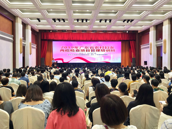 2019年7月16日,2019年广东省农村妇女两癌(宫颈癌和乳腺癌,以下简称“两癌”)检查项目管理培训班在广州成功举办。广东省卫生健康委妇幼处副处长肖力、主任科员刘薇;广东省妇幼保健院副院长刘风华出席培训班开幕式。全省各地市级卫生健康局(委)妇幼主管部门项目负责同志、各地市妇幼保健院项目管理人员及90个项目县(区)卫生健康局妇幼主管部门项目负责同志、妇幼保健院项目管理人员共340人参加会议。培训班由我院保健部主任朱颖贤主持。