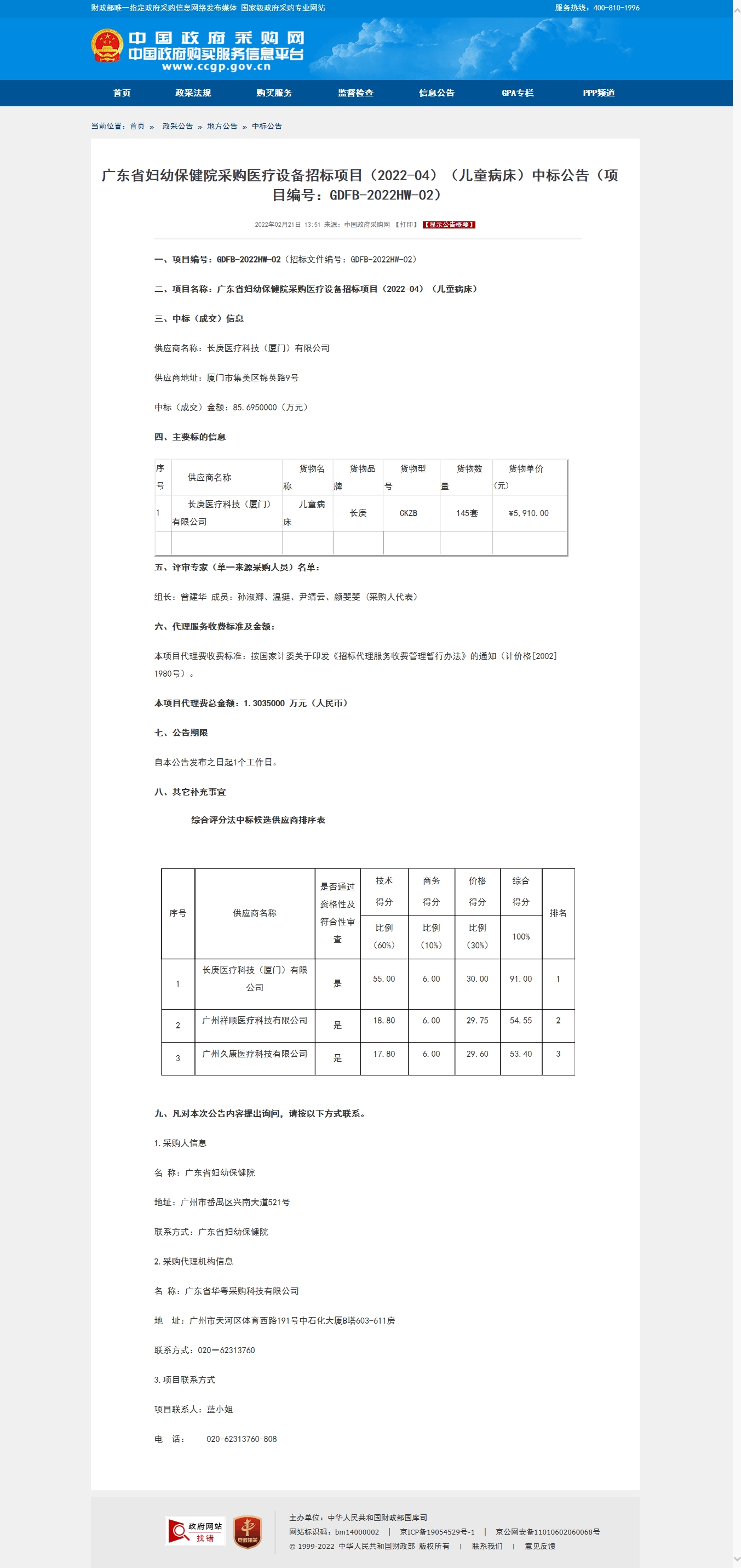 二、项目名称:广东省妇幼保健院采购医疗设备招标项目(2022-04)(儿童病床)