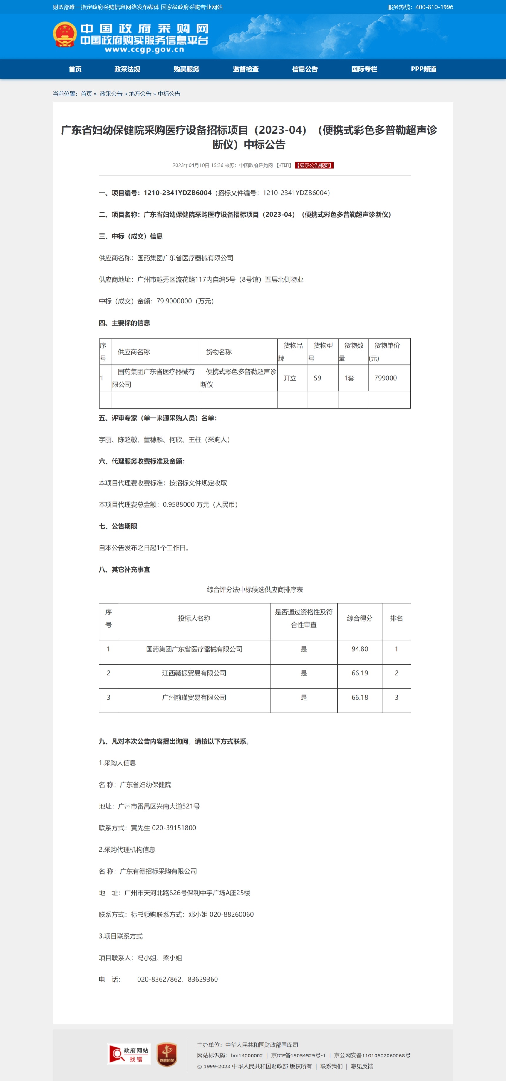 二、项目名称:广东省妇幼保健院采购医疗设备招标项目(2023-04)(便携式彩色多普勒超声诊断仪)
